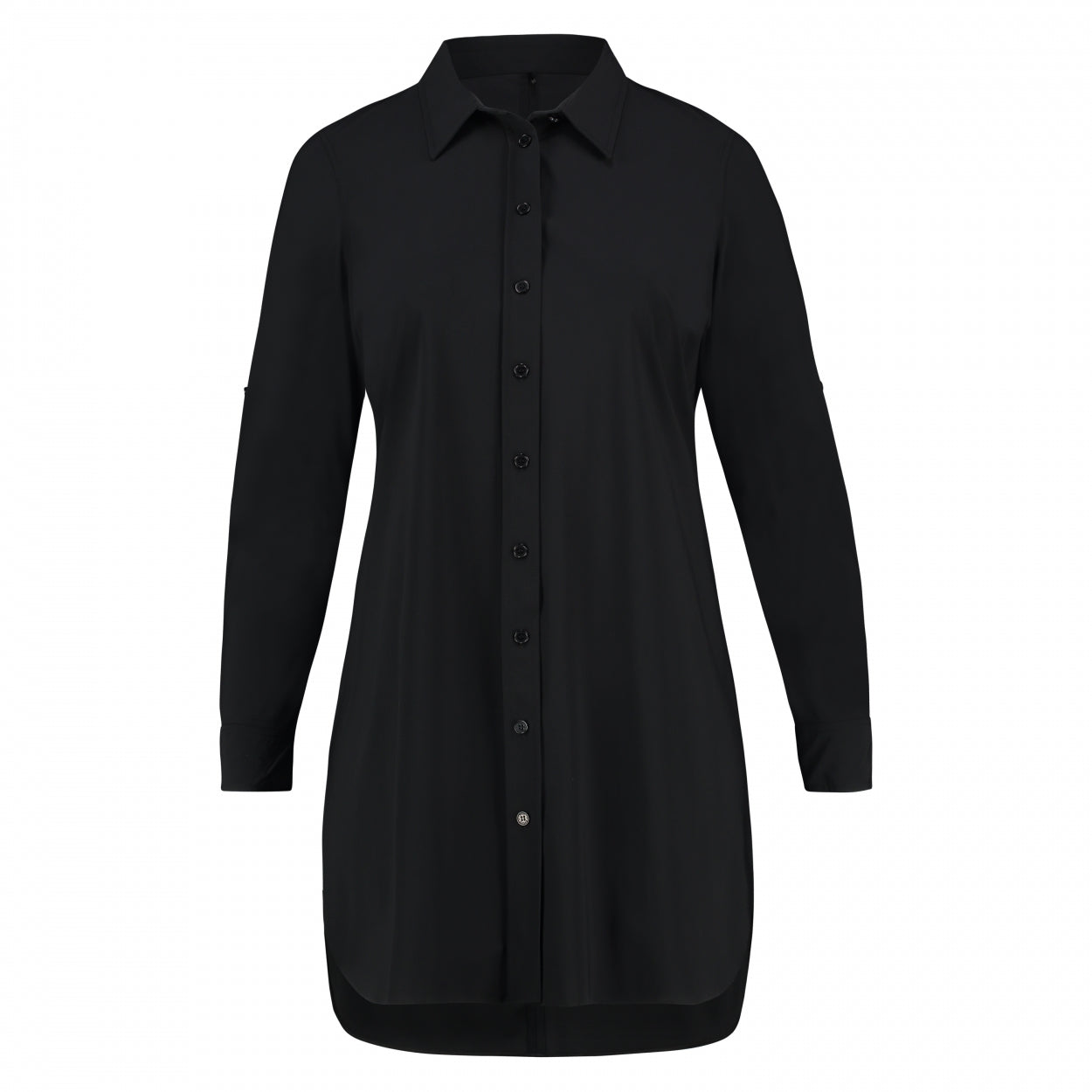 Sportieve blouse met zichtbare knoopsluiting en ronde bottom met split.