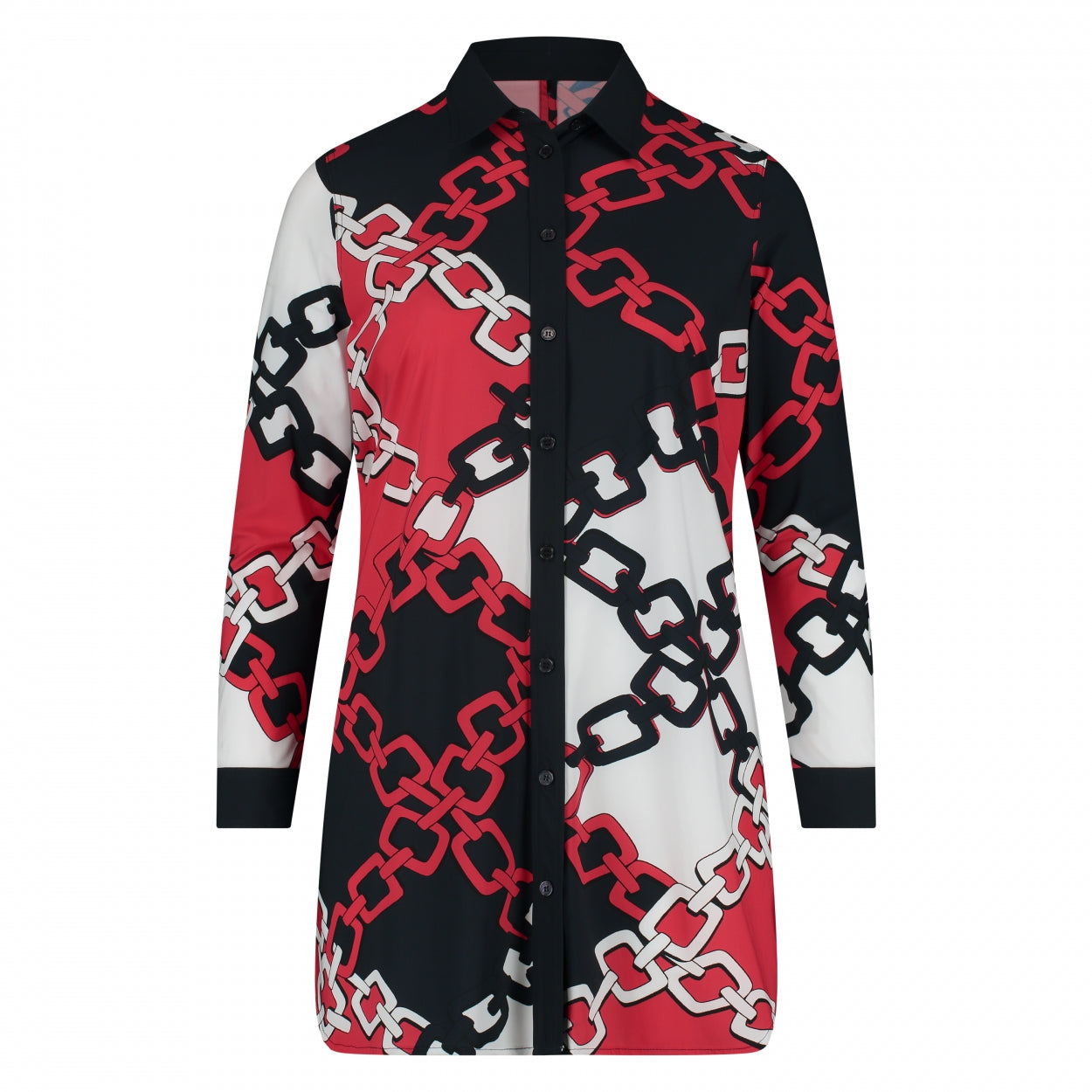 Sportieve blouse met zichtbare knoopsluiting en ronde bottom met split.