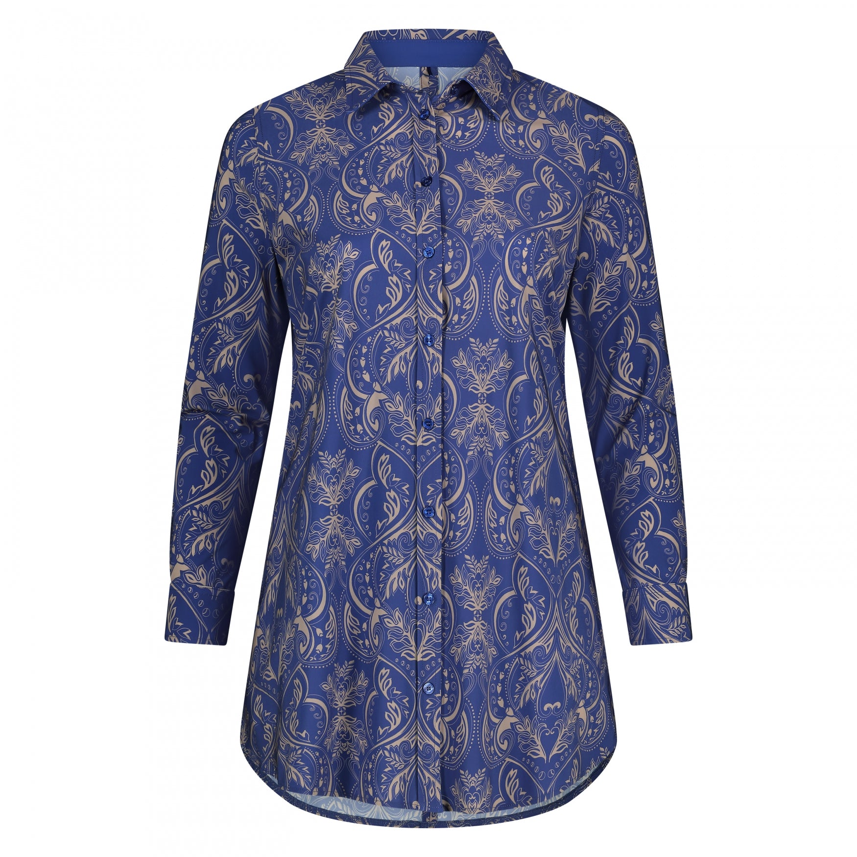 Sportieve blouse met zichtbare knoopsluiting en ronde bottom met split.