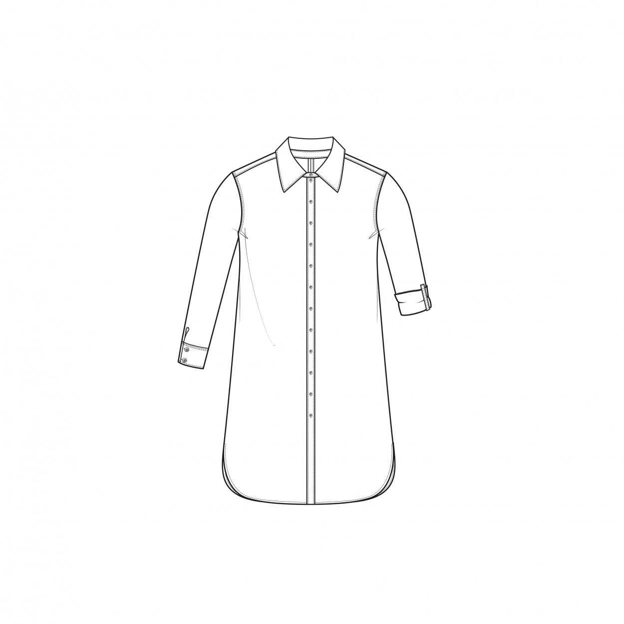 Sportieve blouse met zichtbare knoopsluiting en ronde bottom met split.