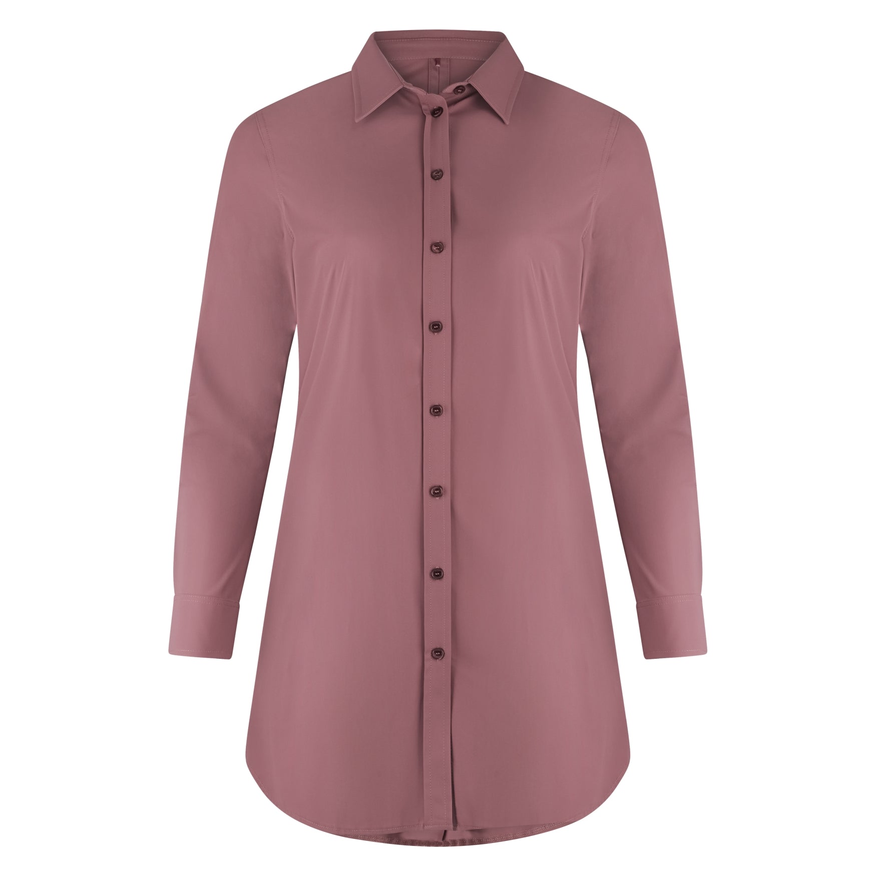 Sportieve blouse met zichtbare knoopsluiting en ronde bottom met split.