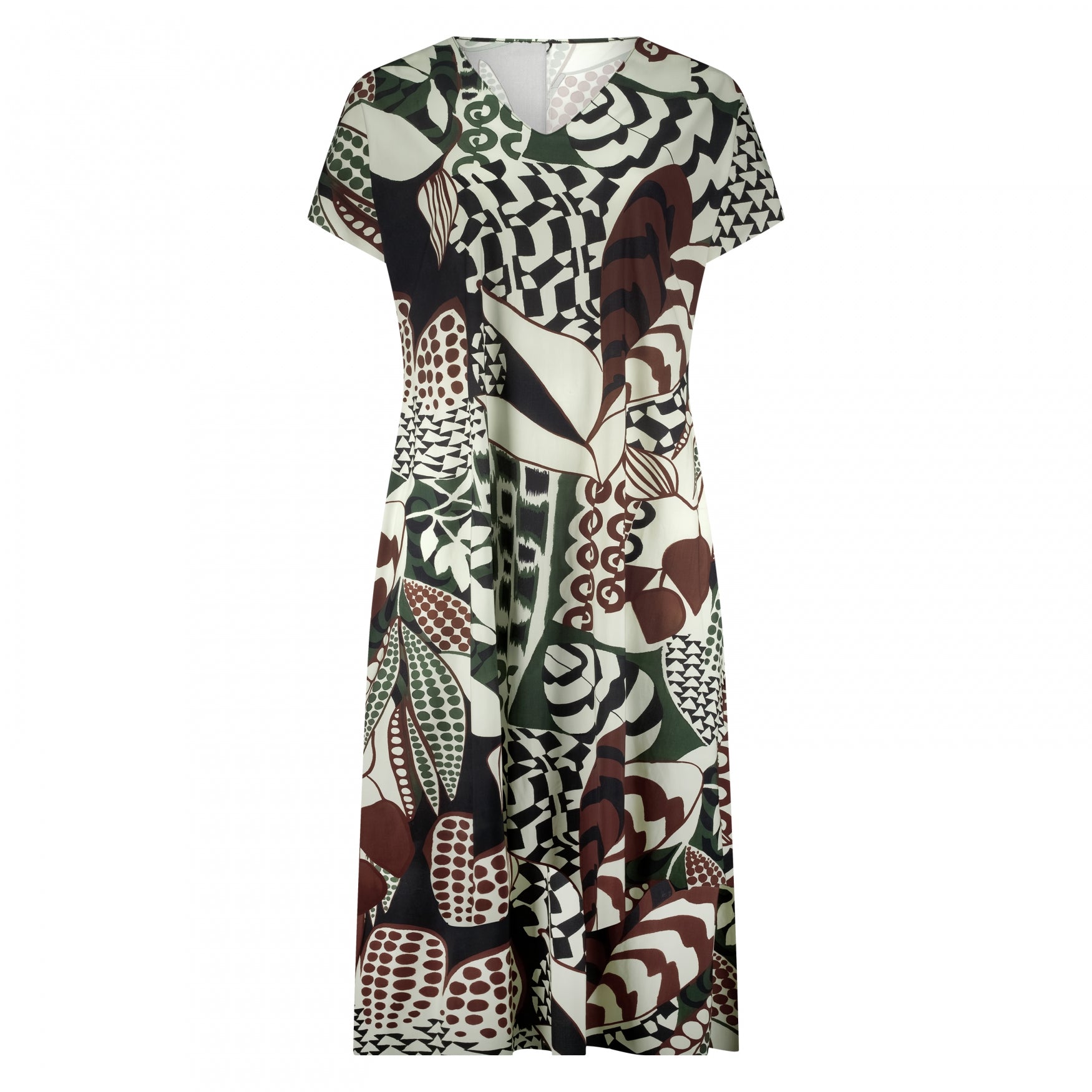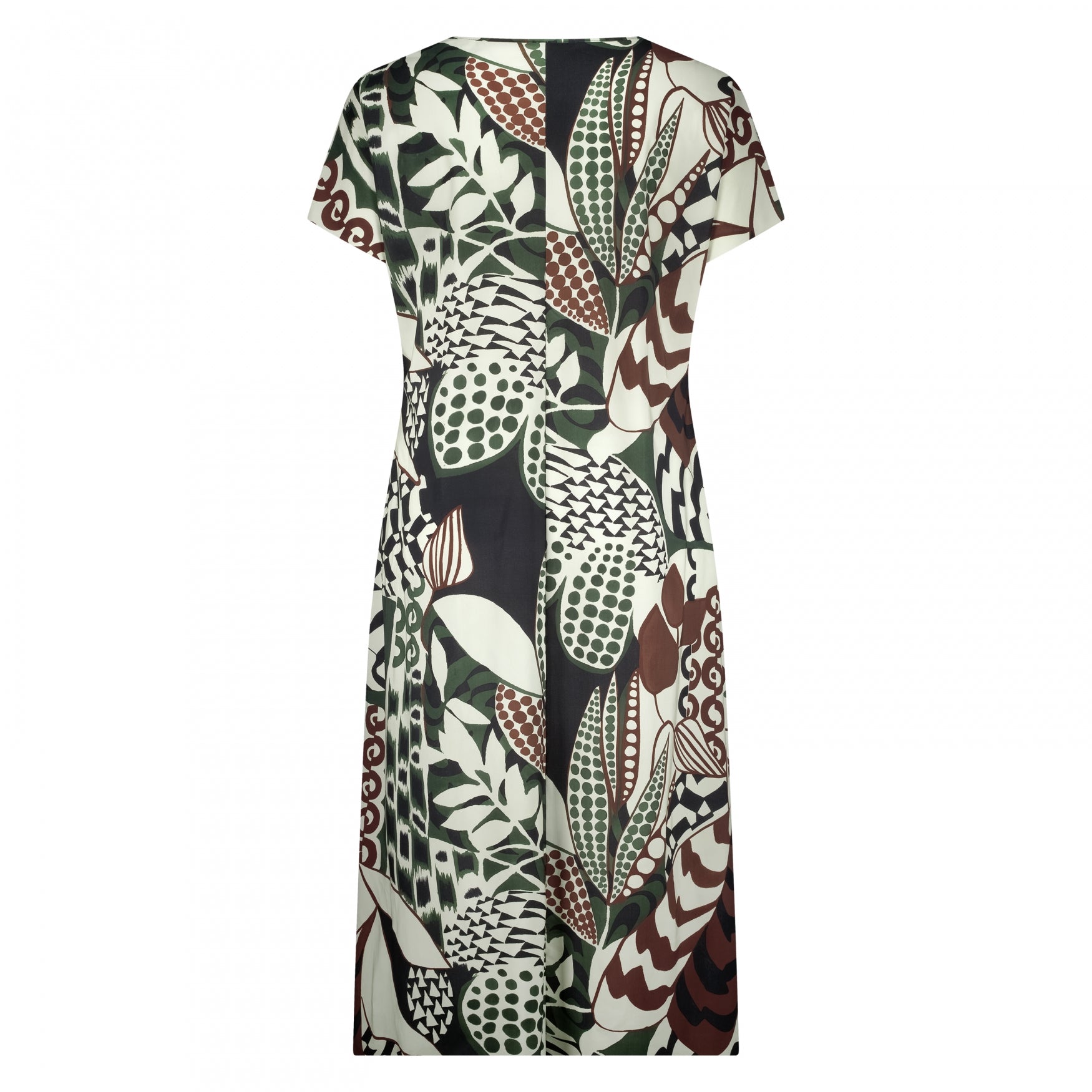 Mooie, lange jurk. Met V-hals (met beleg), mouw met split (raw cut) en lange lengte (raw cut) met split tot knie.