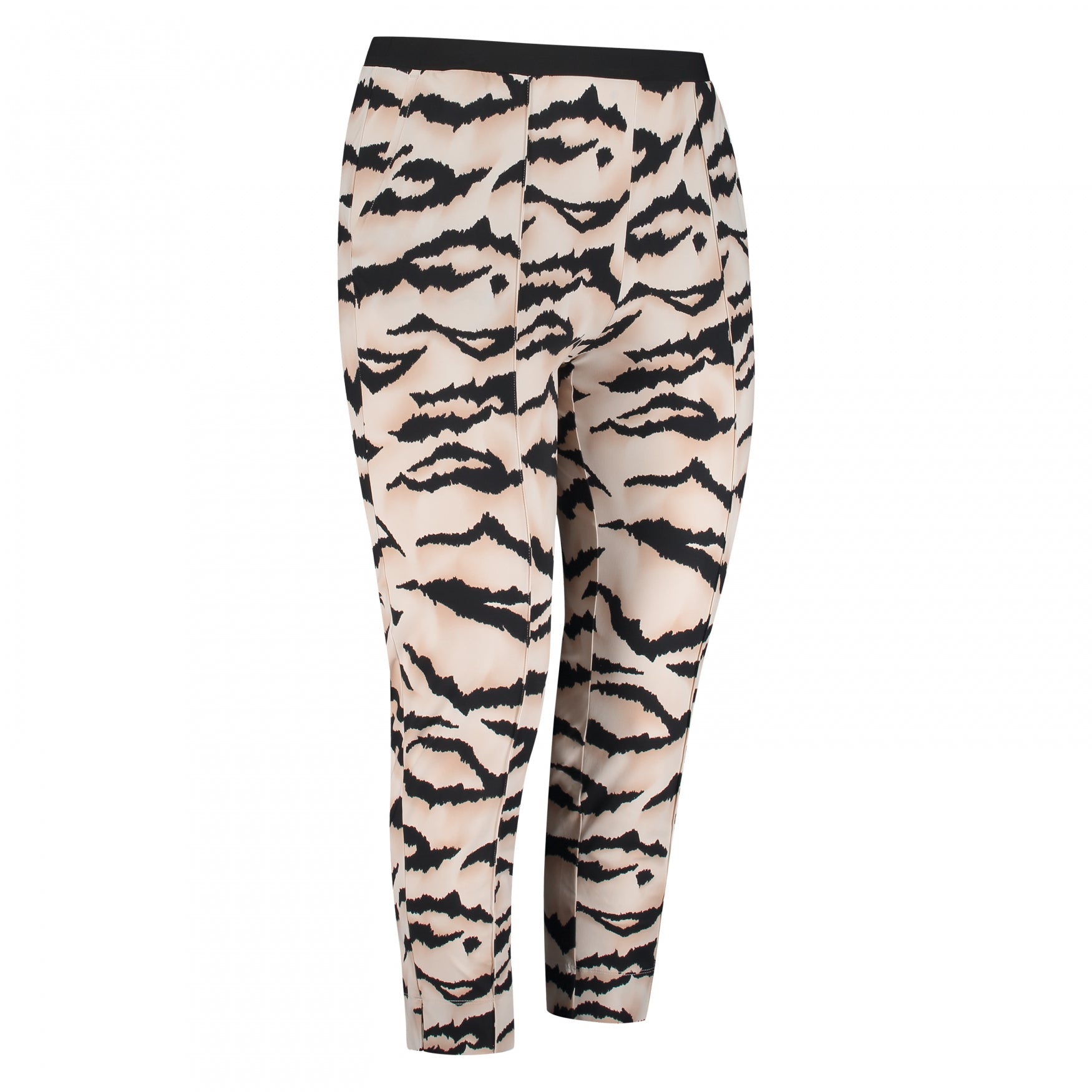 Rechte city broek 7/8 lengte, met 2 steekzakken voor en 2 fake strookzakken achter. Ingestikte naad op been voor. Split onderaan op pijp.