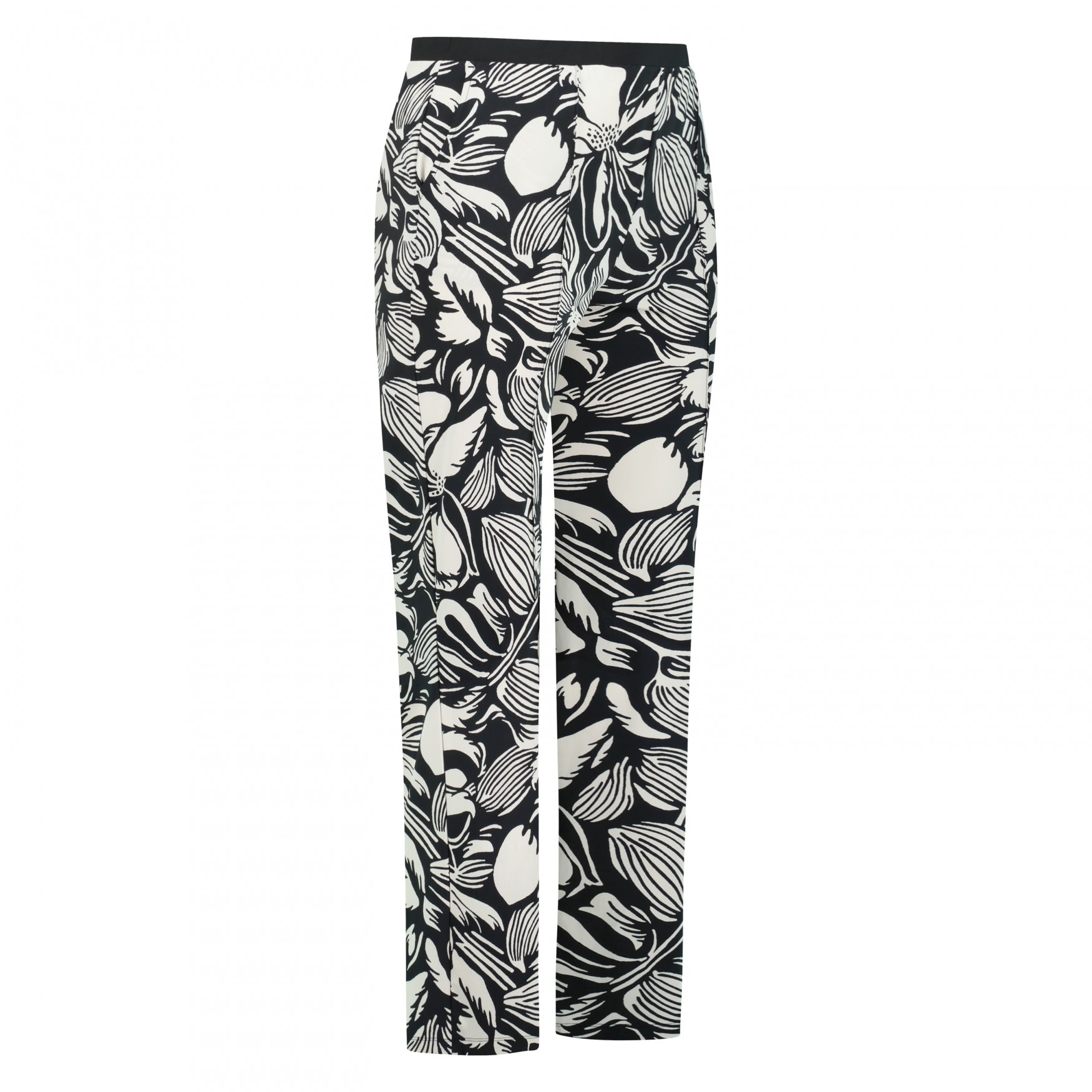 Wijde pantalon met steekzakken voor en strookzakken achter. Ingestikte naad op het been.