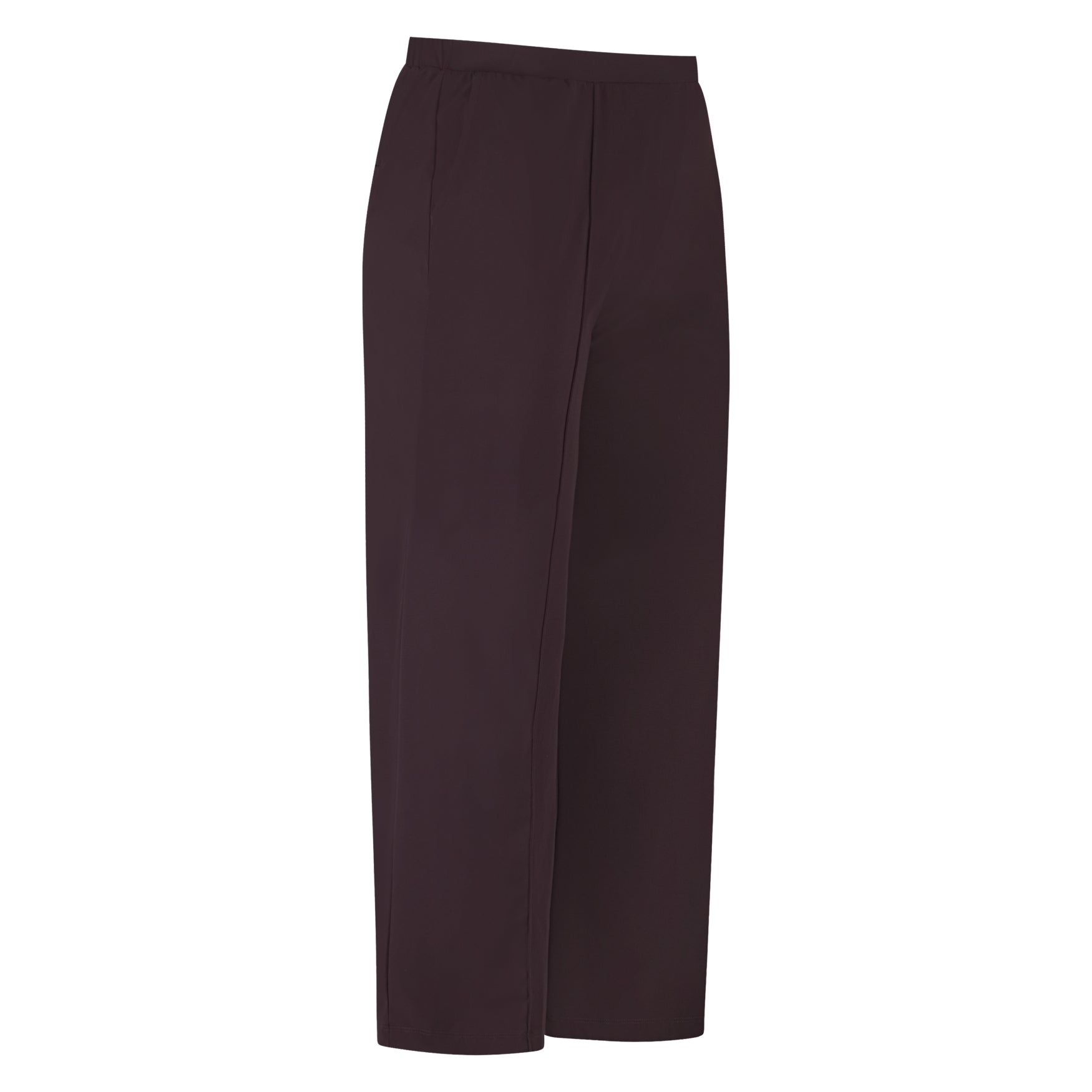 Wijde, rechte pantalon met steekzakken voor en fake strookzakken achter.