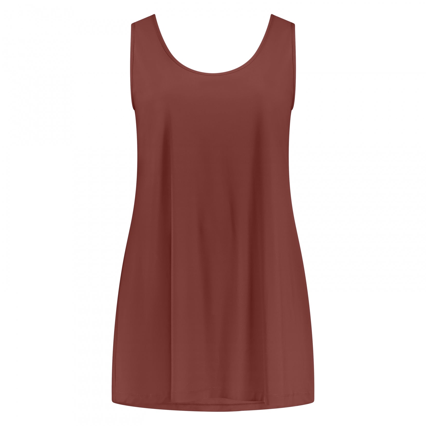 Een licht uitlopende mouwloze top. Zowel met ronde halslijn als met V-hals voor te dragen.
