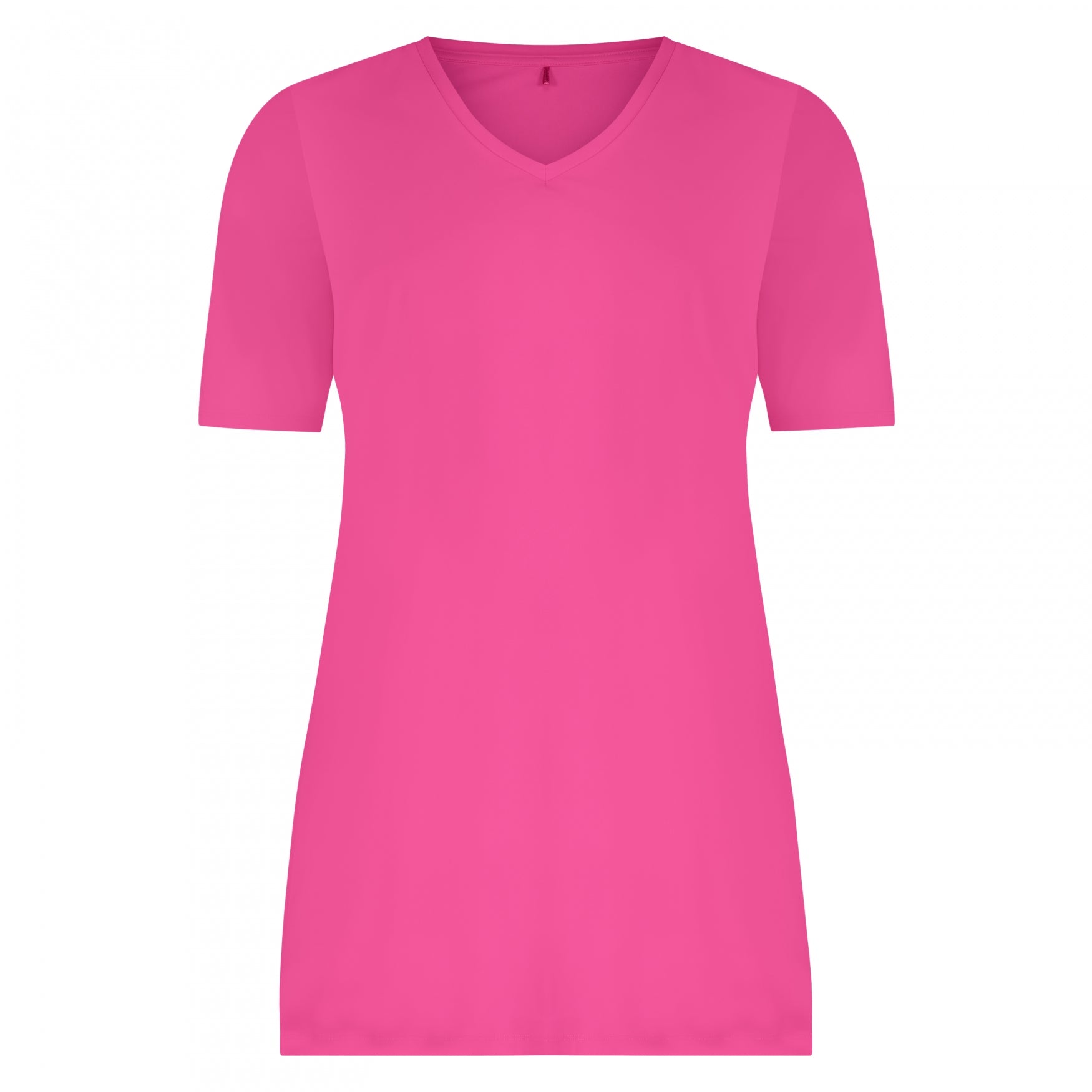 T-shirt met V-hals en slanke mouw tot aan de elleboog.