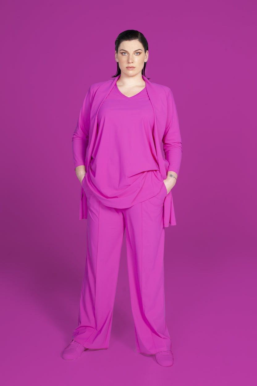 T-shirt met V-hals en slanke mouw tot aan de elleboog.