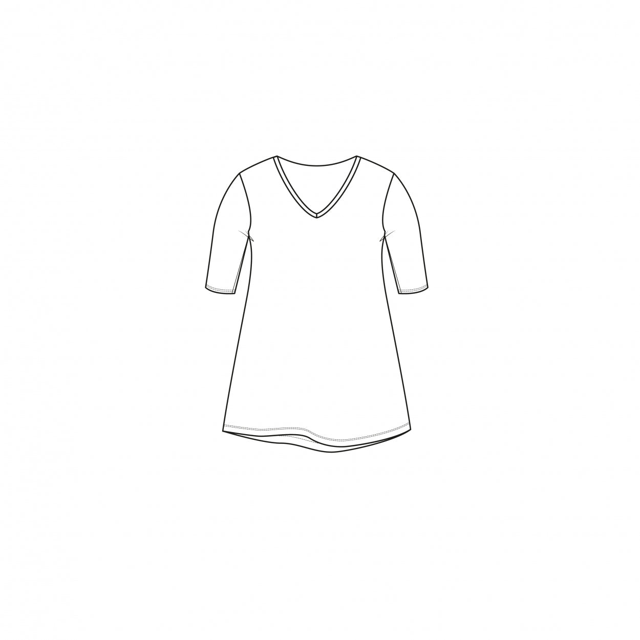 T-shirt met V-hals en slanke mouw tot aan de elleboog.
