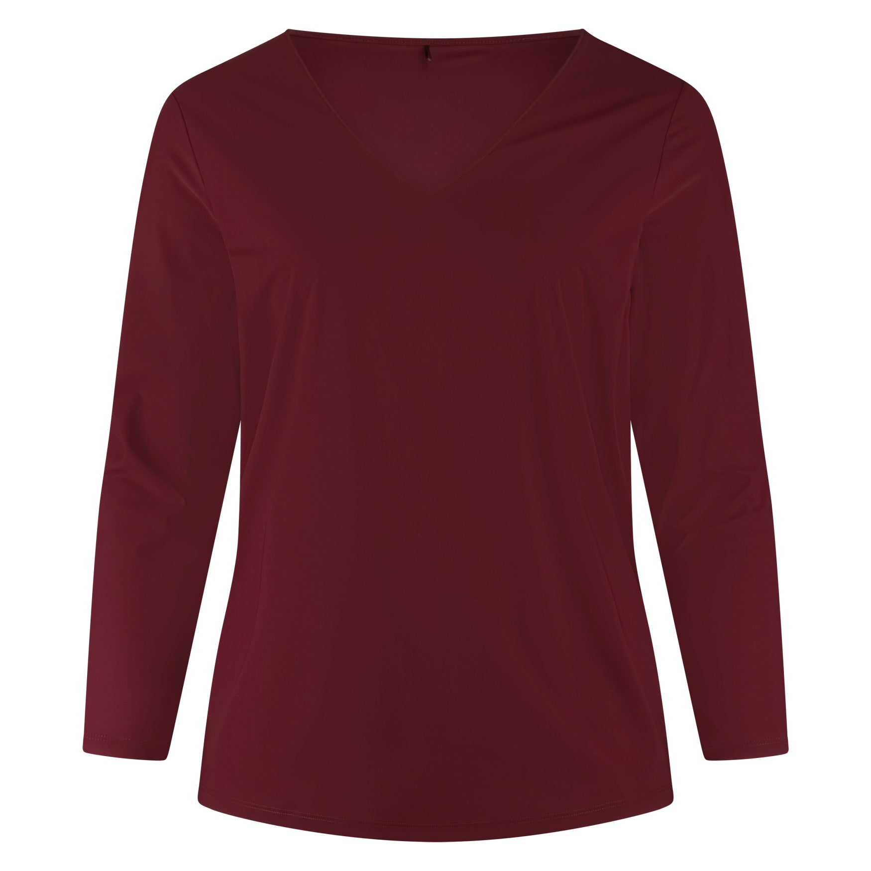 Top met V-hals en kort, aanlsuitend mouwtje.