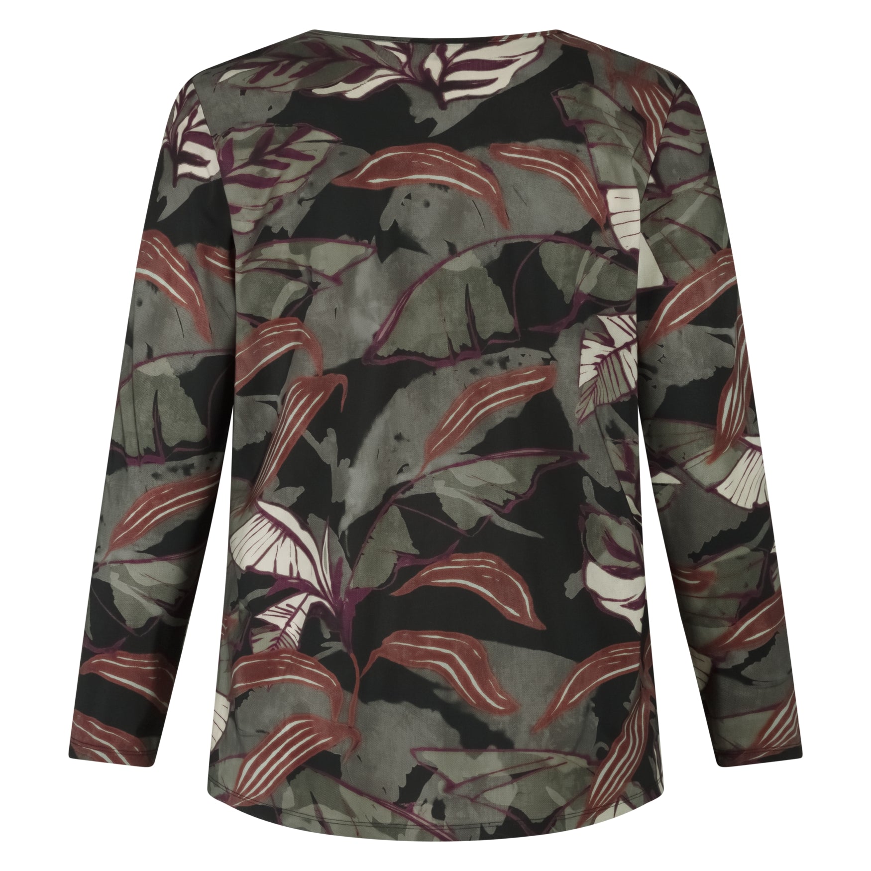 Top met V-hals en kort, aanlsuitend mouwtje.
