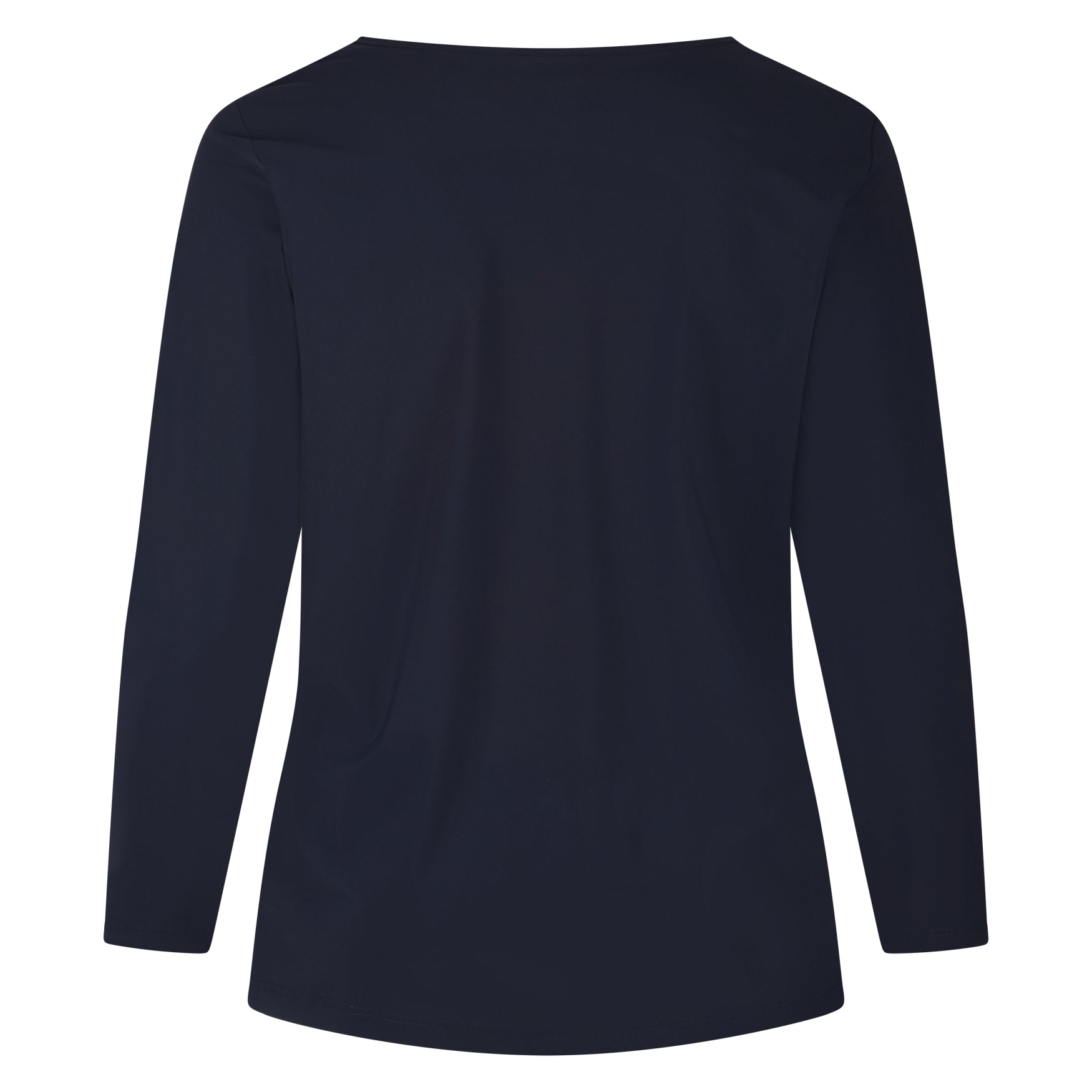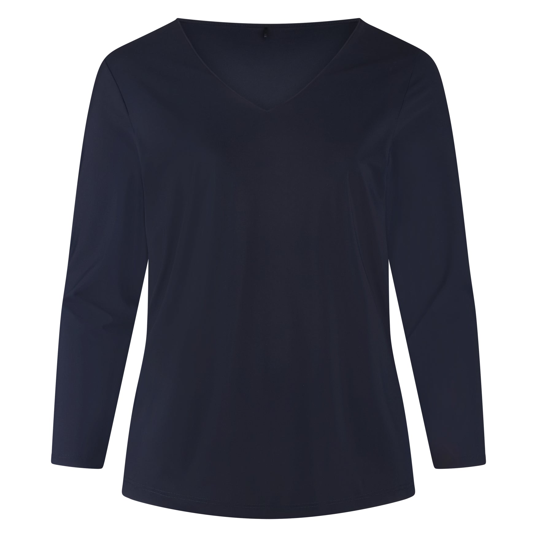 Top met V-hals en kort, aanlsuitend mouwtje.