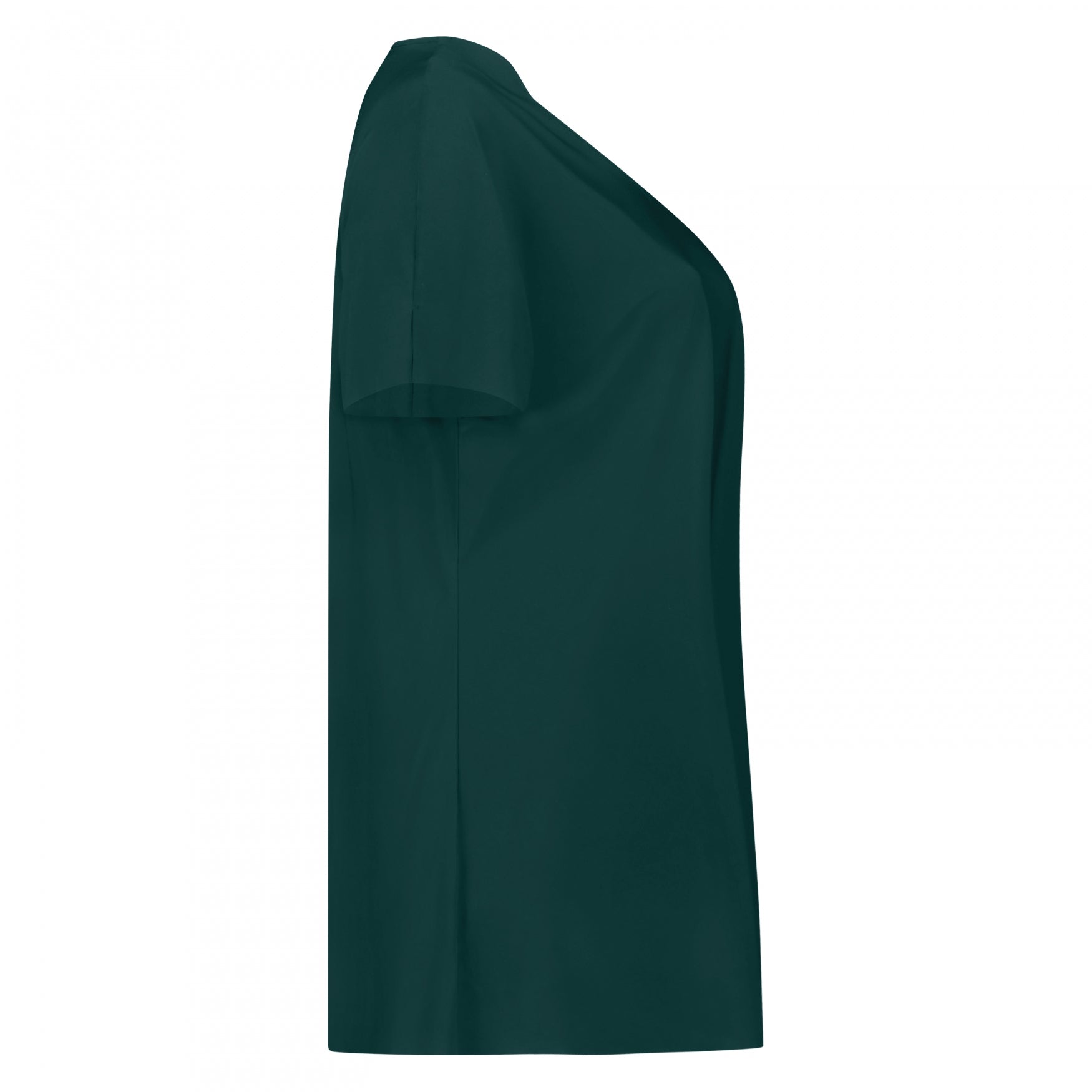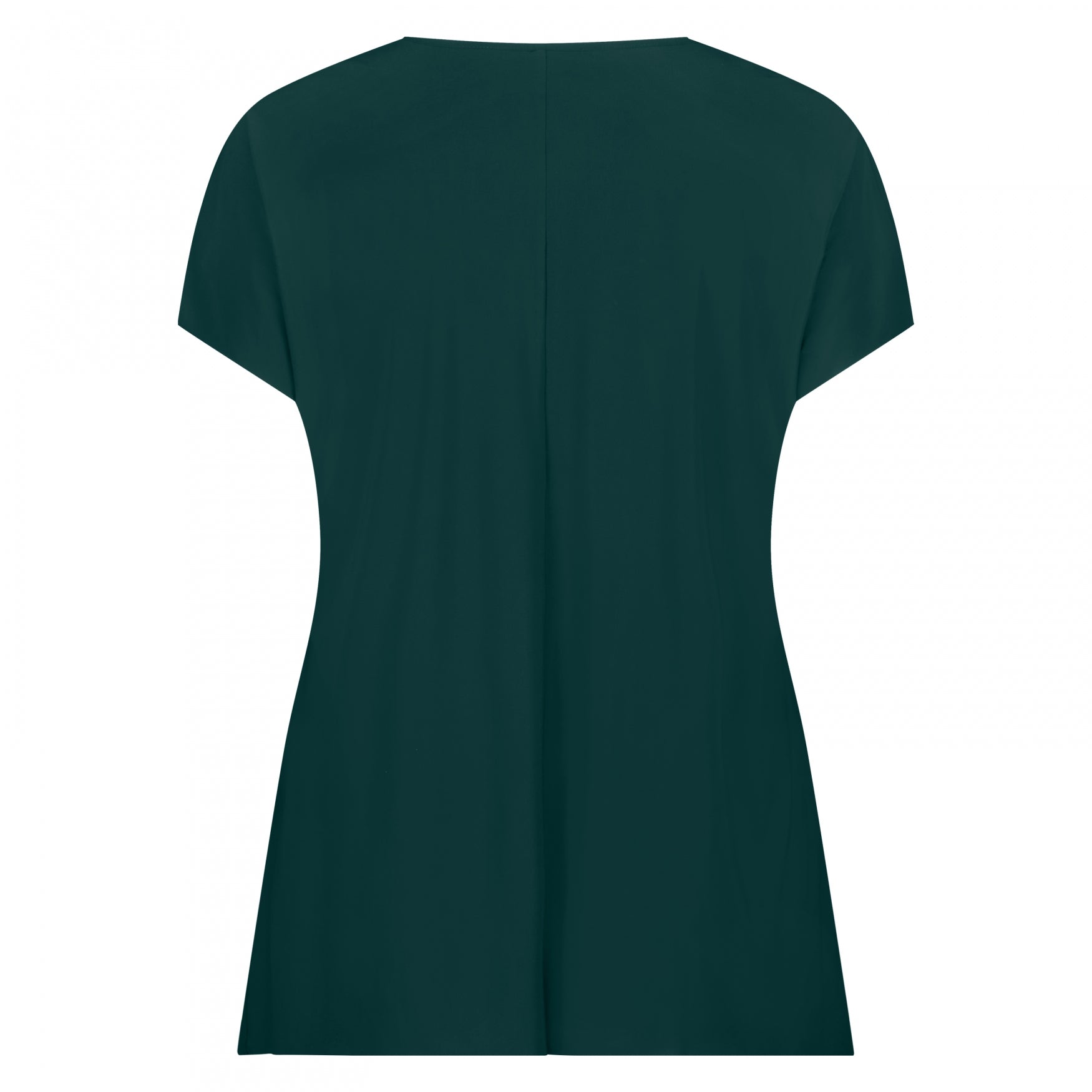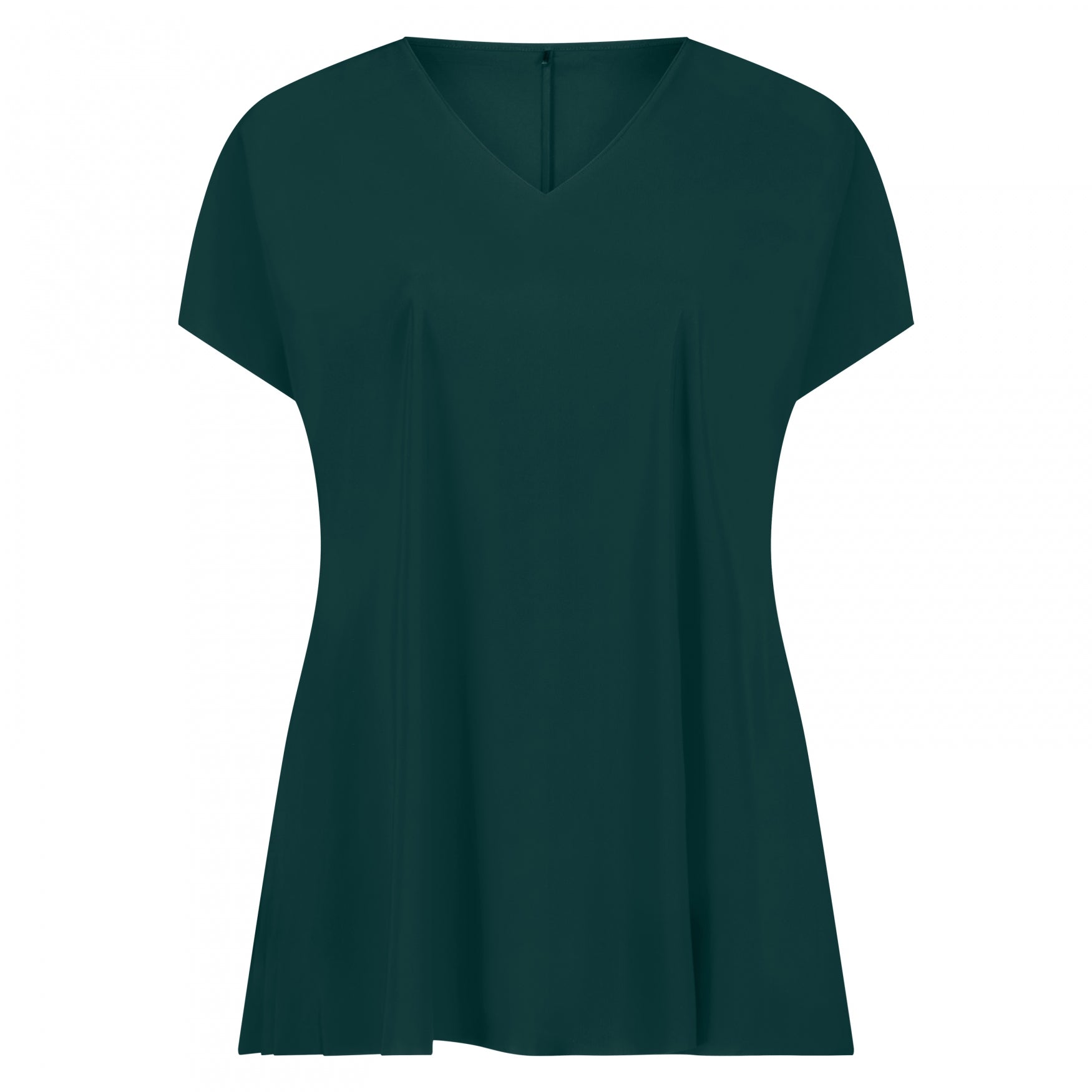 Soepelvallende, A-lijn top met V hals en kortere aangeknipte mouw met splitje.