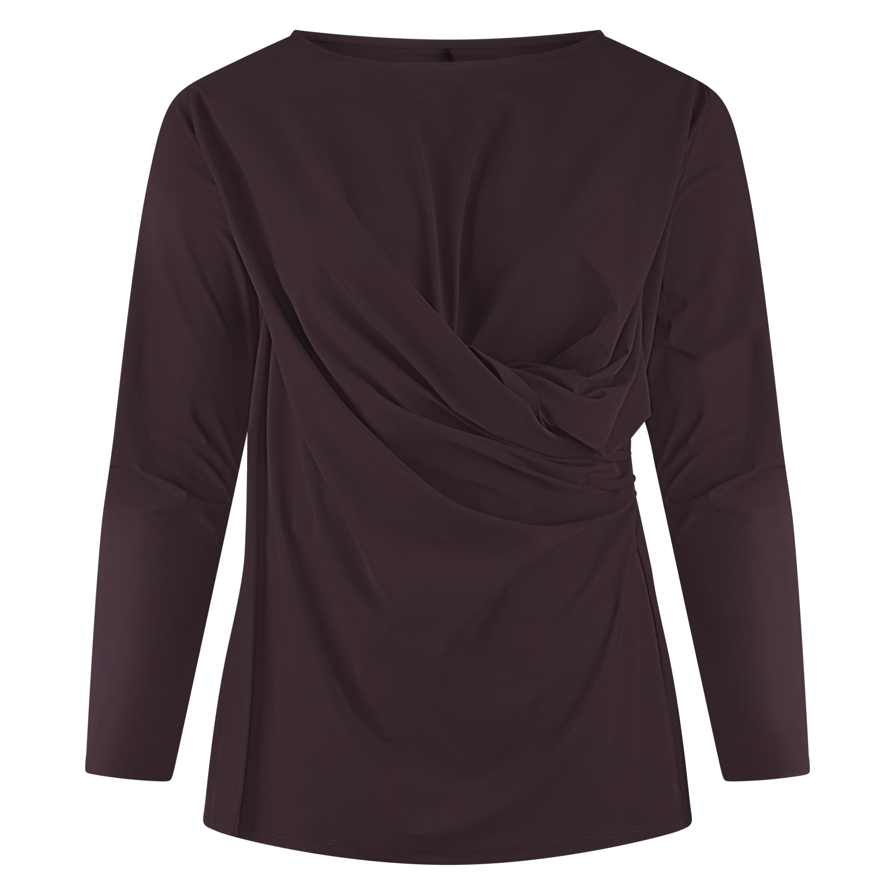 T-shirt lange mouw met ronde hals. bovendeel mouw is ruimer door de ingewerkte plooi.