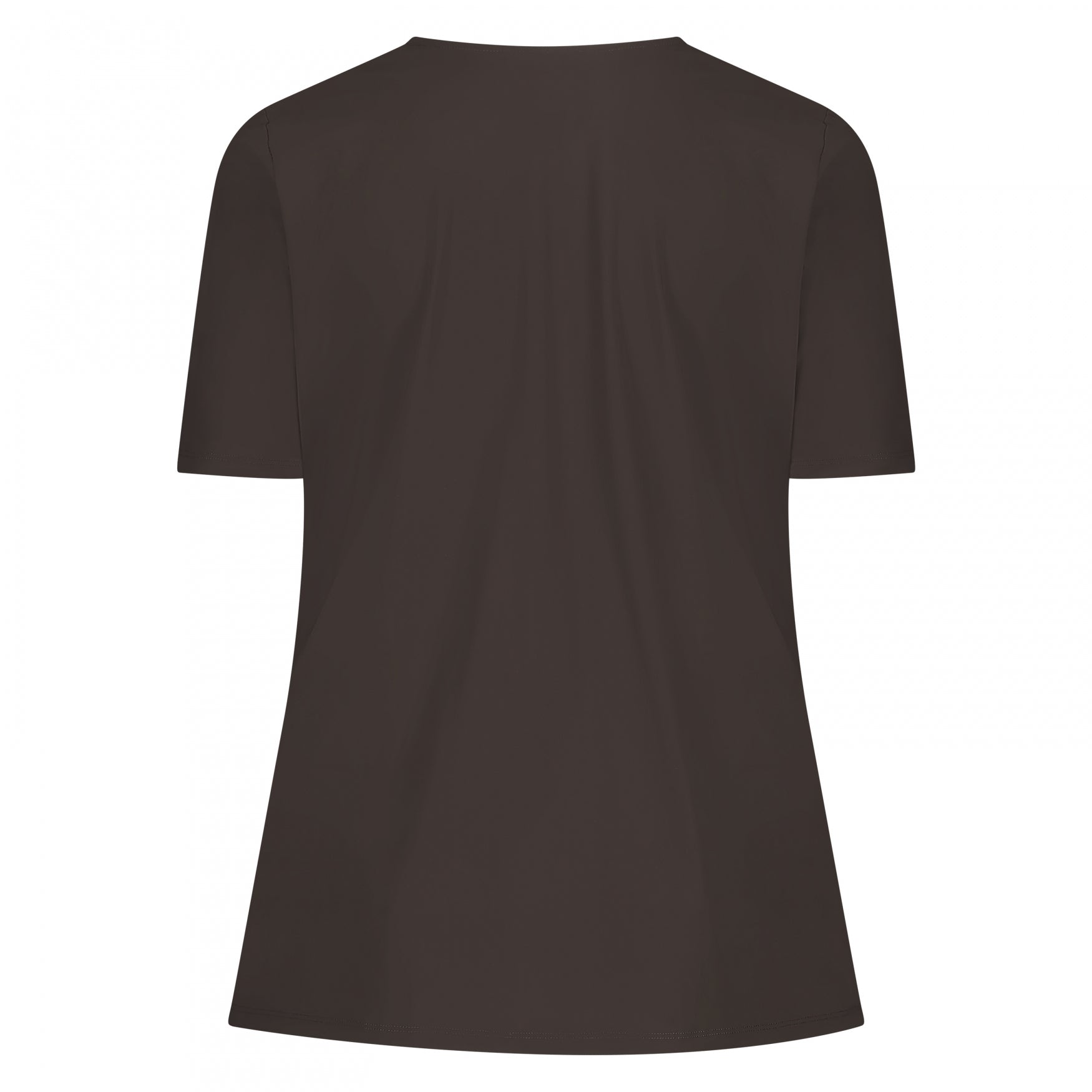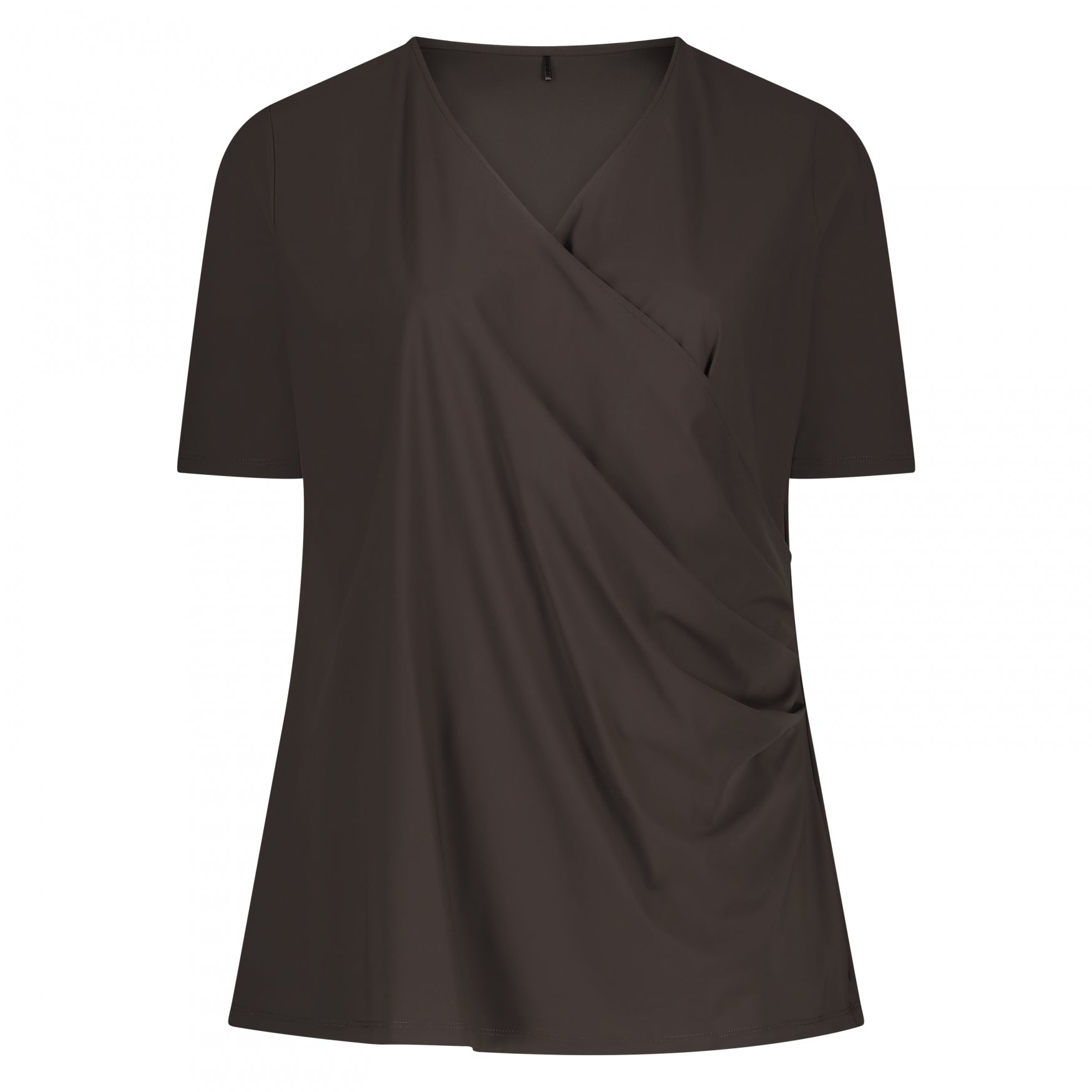 Korte mouw top in lengte van 85 cm. Overslag met plooien.