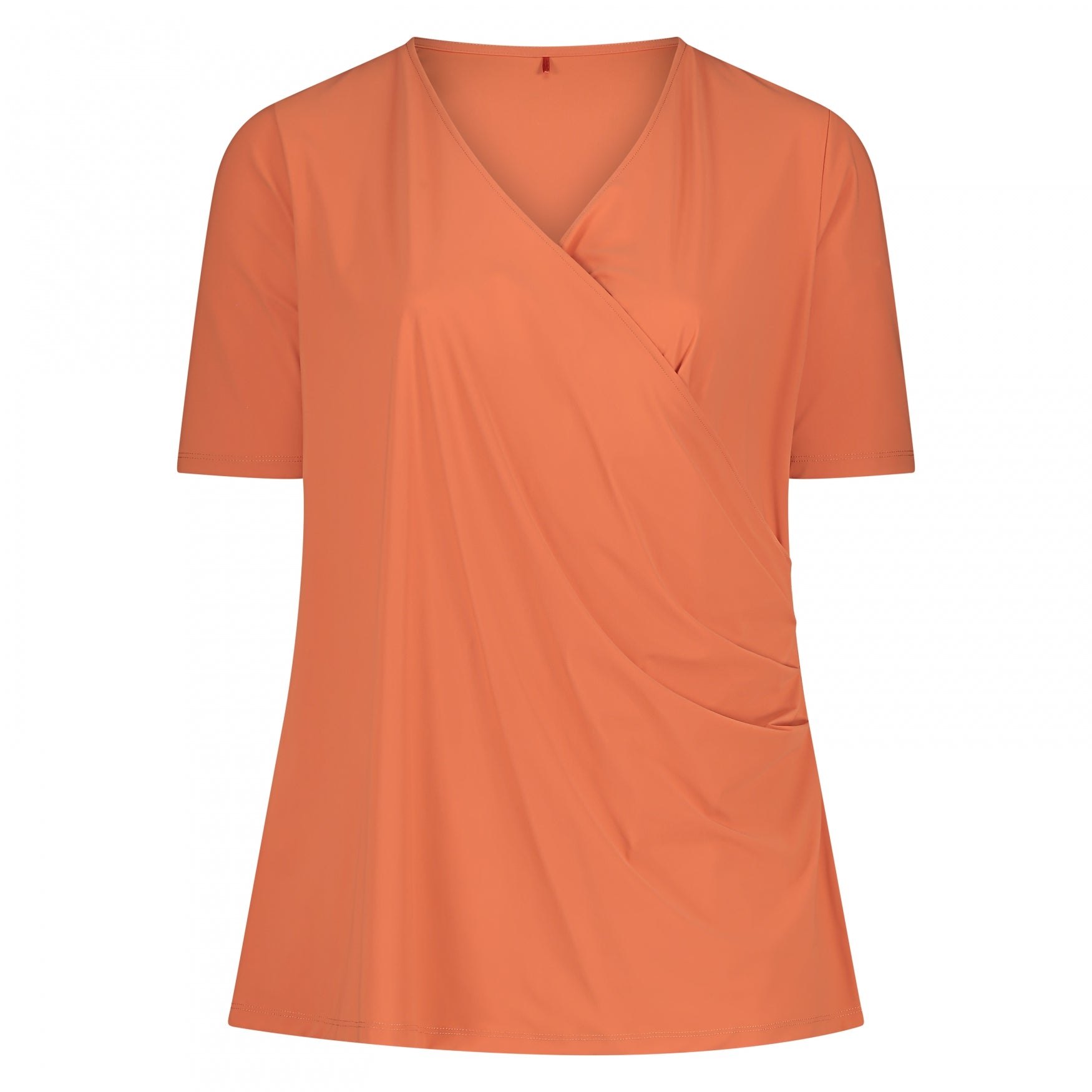 Korte mouw top in lengte van 85 cm. Overslag met plooien.