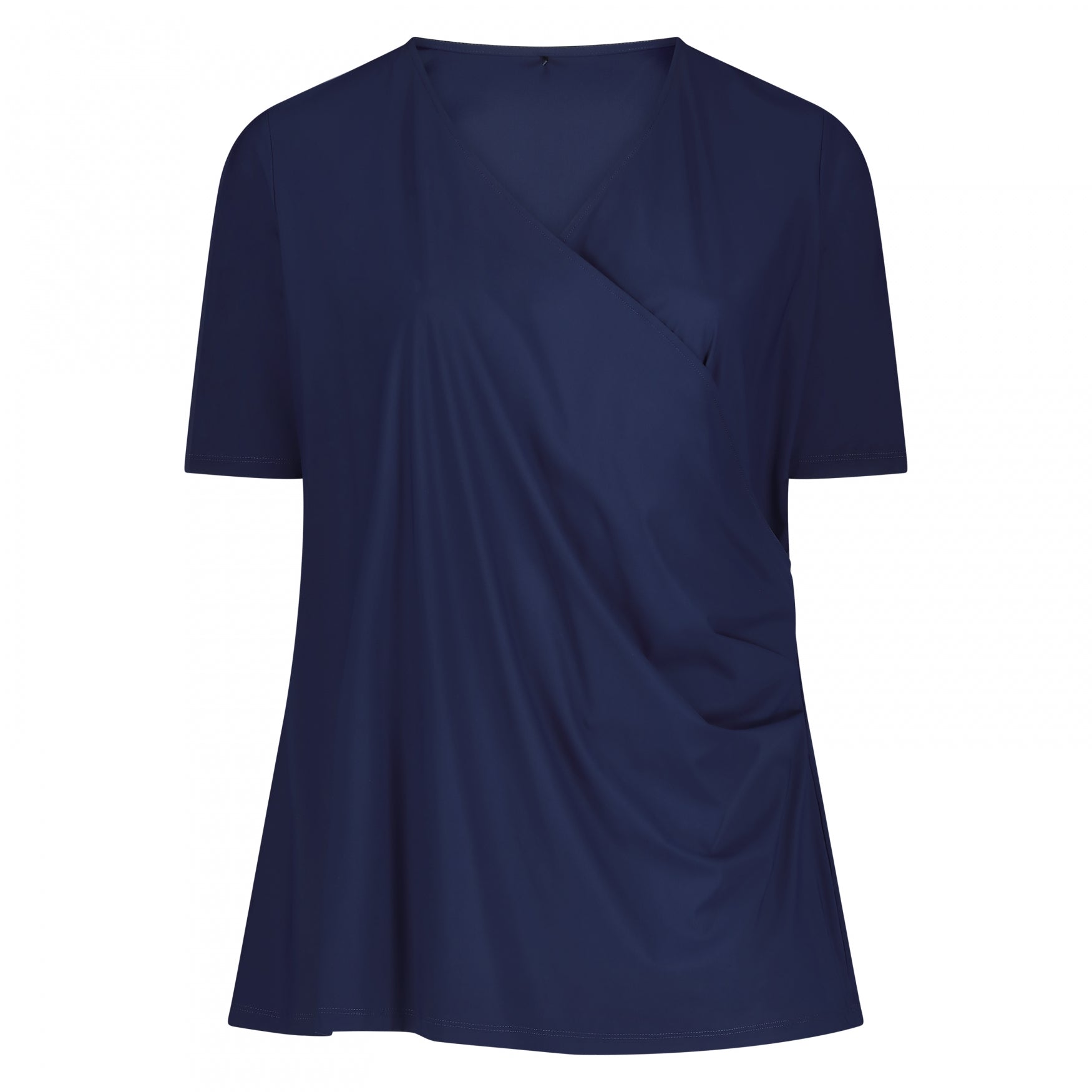 Korte mouw top in lengte van 85 cm. Overslag met plooien.