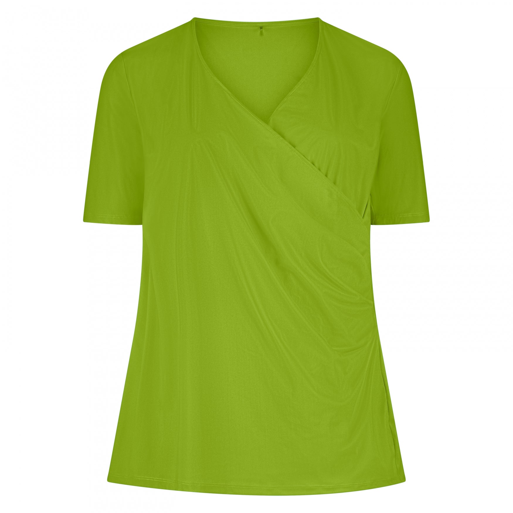 Korte mouw top in lengte van 85 cm. Overslag met plooien.